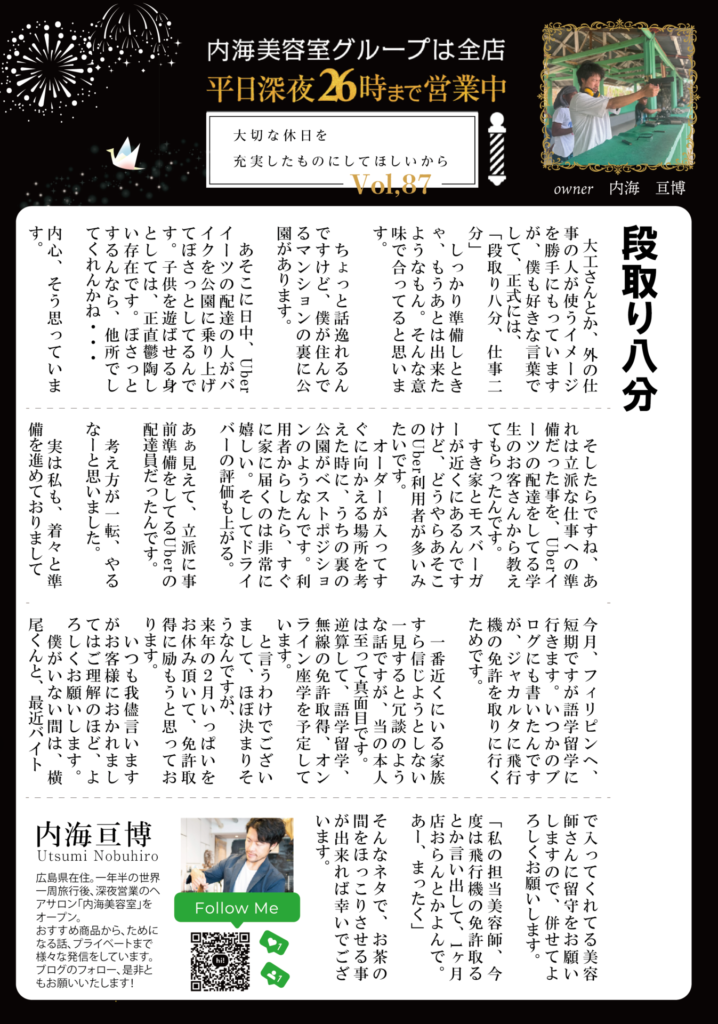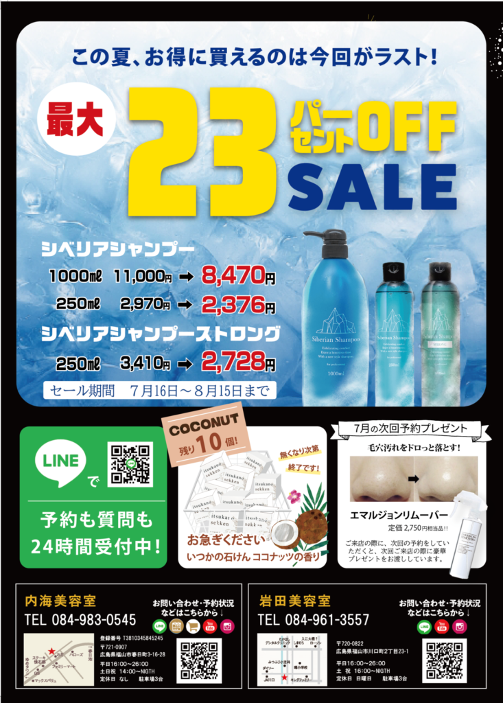 広島県福山市で1番夜遅くまで営業している内海美容室の最新情報です。